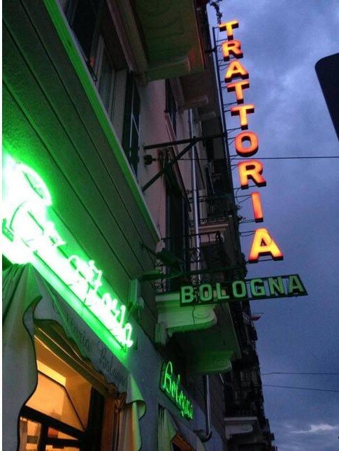 Era una delle ultime (ma a dire il vero per quanto mi sforzi non ne so citare altre) trattorie di Torino. Quelle che un tempo venivano definite “piole”, quei locali che rimandavano alla Torino di un tempo, grigia ma con una identità ben precisa, oggi che invece è colorata ma senz’anima. La piola dove trovavi il pensionato habitué ma anche il borghese e lo studente: sembra un cliché ma era davvero così. Niente piatti elaborati, per la carità, pasta al pomodoro, vitello tonnato, trippa, brasato, créme caramel. Ti sedevi lì anche per cullarti nelle tue certezze culinarie. Sapevi che il servizio ci avrebbe impiegato un po’, ma del resto erano solo in due a servire ed era sempre pieno. Nulla da trasmissioni televisive, nulla da riportare su qualche patinata guida gastronomica da tour operator: una nicchia. Poi, se non ti andava di cenare nella sala con la televisione sempre accesa (ma a basso volume, mi raccomando) ecco la saletta sempre pronta. Lui in cucina, sardo, con bei ricordi di grandi pescate. Lei in sala, piemontese, sempre col sorriso sulle labbra, e non quello finto cortese. Sì, ogni tanto ti salutava dicendo che erano stanchi, che prima o poi avrebbero mollato tutto per godersi la pensione, ma era un pensiero quello che scacciavi, come tutti i pensieri disturbanti sulla fine, che rimandi, rimandi. E poi quell’insegna, sempre la stessa, senza tanti fronzoli. La trattoria era in Via Bologna? Allora si doveva chiamare “Trattoria Bologna”, altro che voli di fantasia!