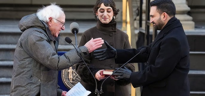 È STATO IL PRIMO sindaco ad aver giurato sul Corano e non sulla Bibbia e, alla cerimonia, accompagnata dalle note di Here Comes the Sun dei Beatles, arriva la benedizione dell’imam Khalid Latif, che parla di uguaglianza sociale ed economica e della necessità di costruire una città più sostenibile da un punto di vista economico. E non sorprende, visto che tra il pubblico c’è quella che ormai si può definire la scuola socialista di New York: Ocasio-Cortez, il difensore civico Jumaane Williams e il senatore Bernie Sanders.