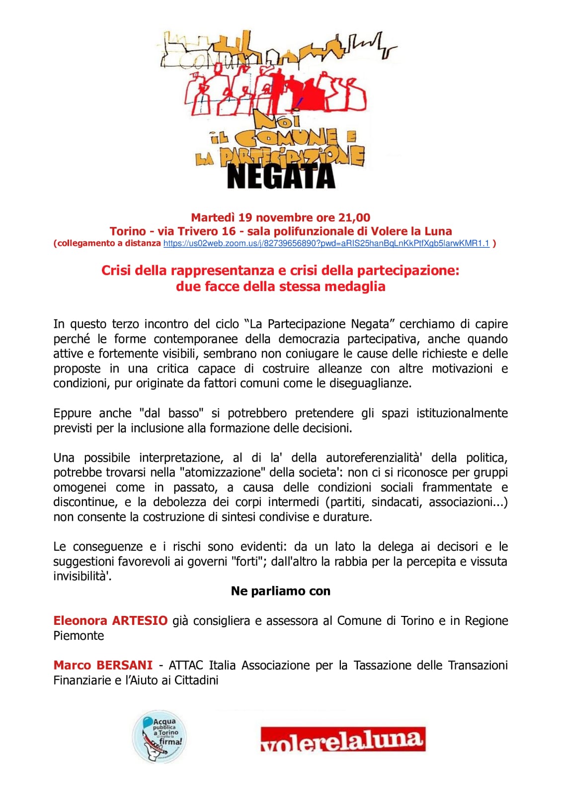 💧Martedì 19 novembre ore 21,00 Torino – via Trivero 16 – sala polifunzionale di Volere la Luna