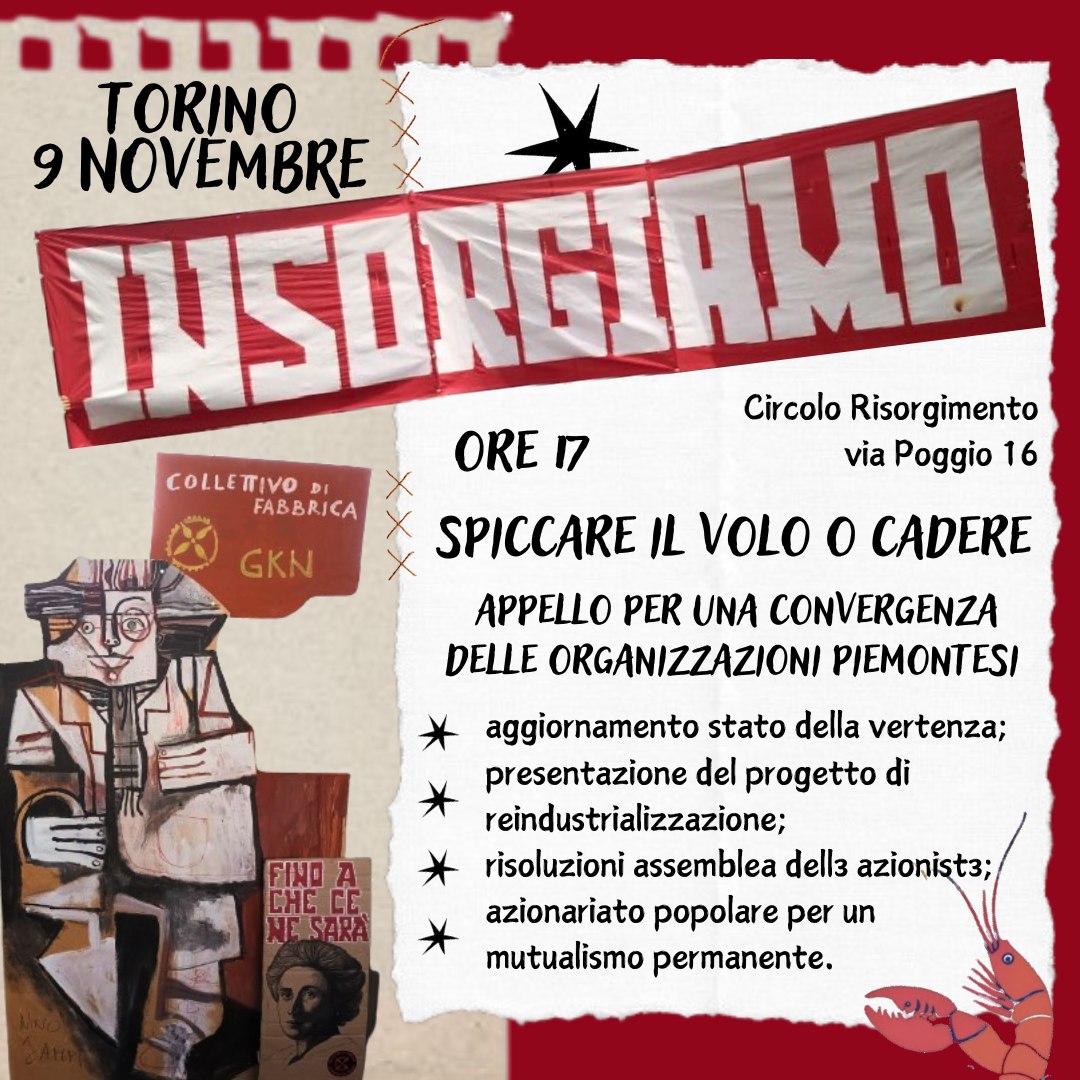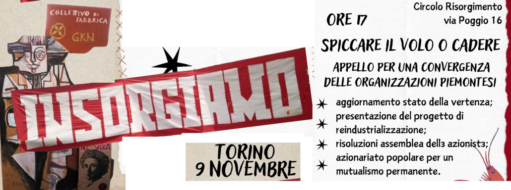Il 9 ottobre ci troveremo alle ore 17.00 al Circolo Risorgimento di Via Poggio 16 a fianco di tante realtà sorelle per una tappa di convergenza delle organizzazioni piemontesi assieme al Collettivo di Fabbrica. È un momento cruciale, quindi cerchiamo di essere tant* e di estendere l’invito a quante più persone possibili. Questo il link dell’evento: